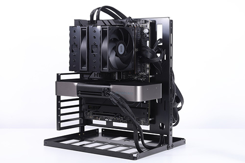 ケースには長尾製作所の「3wayオープンフレーム スタック式」を垂直方向で設置。CPUクーラーのファンスピードは全開(約2,200rpm)に設定し、テスト時の室温は約25℃に調整した。CPUクーラーにとっては比較的好条件だが、一般的なPCケースでも十分なエアフローを確保すれば同等以上の環境を整えることも難しくはないだろう。
