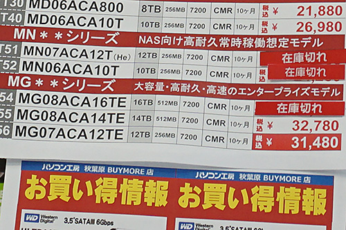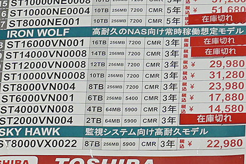 12~16TBの大容量製品が大幅安、WD製8TBなど値上がりの動きも