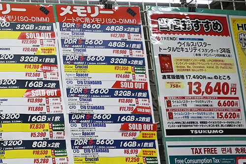 DDR4 32GB×2枚組が約2万円に急騰、DDR5は特価終了などで10~20%以上の値上がり