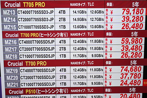 Crucial T700 CT2000T700SSD5(2TB,PCIe 5.0) | 4 | 29,800 | 0 | 43,060 | -3,025 |