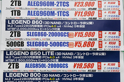 ADATA LEGEND 860 SLEG-860-2000GCS(2TB,PCIe 4.0) | 3 | 15,980 | - | 15,980 | - |
