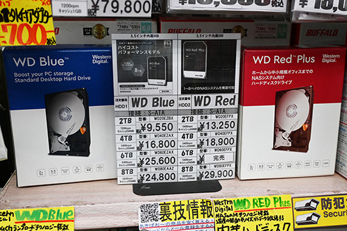 HDDの値上がりが激化、Western Digital「WD Blue」8TBの中心価格は31,000円前後に [11月前半のHDD価格]