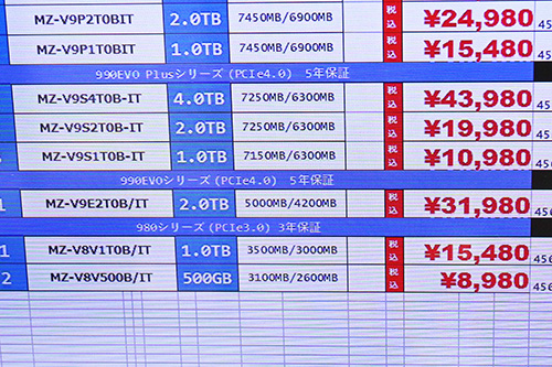 Samsung「990 EVO Plus」は最大1万円の上昇