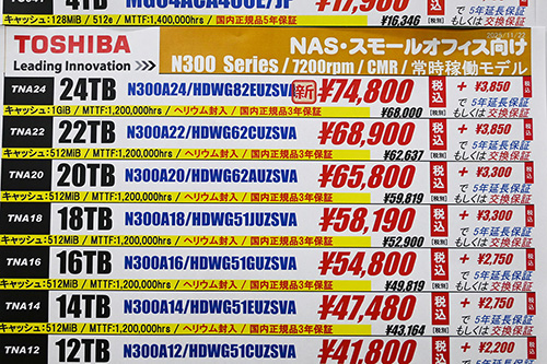 2万円を切る8TB HDDが7年半ぶりに消滅、東芝「N300」の24TBモデルが販売開始 [11月後半のHDD価格]
