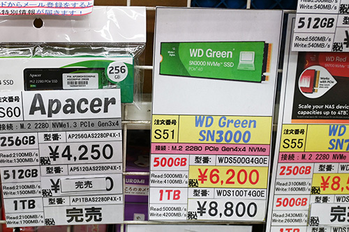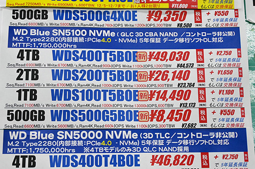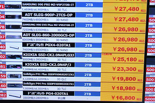値上がりと特価終了のダブルパンチ、SSD全体は値上がりが継続