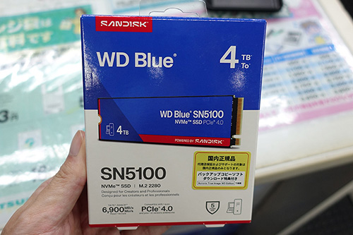 Sandisk「WD Blue SN5100」には4TBモデルが追加。最大データ転送速度はリード6,900MB/s、ライト6,700MB/s、耐久性1,200TBWで、価格は49,030円だ。