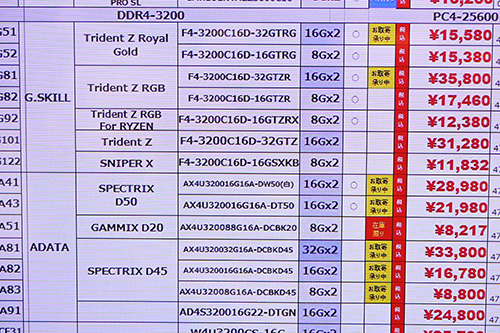 ところで、「DDR5-7200」16GB×2枚組は9,800円(44.6%)高の31,780円(G.SKILL)に上がったが、今回調査のDDR5 16GB×2枚組としては、意外にも上述した「DDR5-4800」(30,980円)に次いで2番目に安価。入荷品の度外れた急騰で在庫との兼ね合いが難しく、こうした価格の逆転は今やごく普通に見られる。