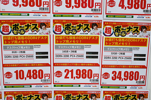 安値品もまだ散見、16GB(1枚)13,980円の例も