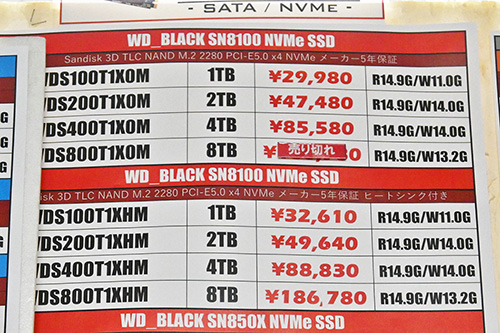 | Western Digital(Sandisk) WD Black SN850X NVMe WDS800T2X0E(8TB,PCIe 4.0) | 2 | 139,800 | +22,820 | 142,790 | +19,400 |