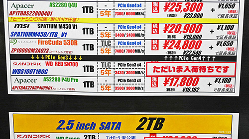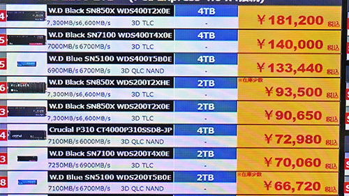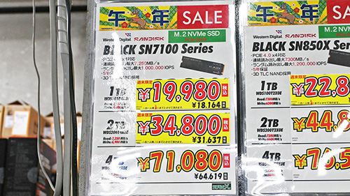 SSDは引き続き値上がりが顕著、8TB SSDが40万円超えなど驚異的な急騰も [1月後半のSSD価格]]