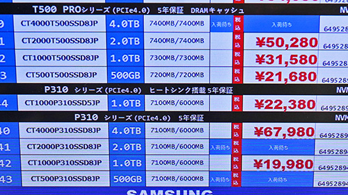 | Crucial T500 CT4000T500SSD5(4TB,PCIe 4.0) | 2 | 82,800 | 0 | 86,390 | 0 |