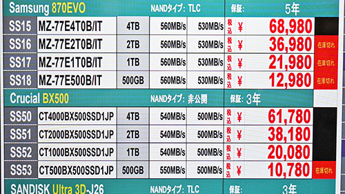 SSDは引き続き値上がりの動きが顕著、8TBが40万円超えなど驚異的な急騰も