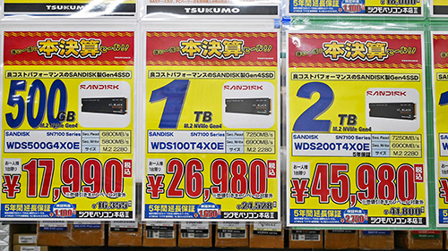 Western Digital(Sandisk)の一部モデルが大幅な特価・下落、Samsungは最大48%の急騰