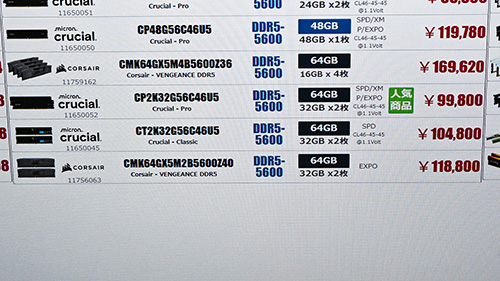 DDR5メモリの下落傾向が強まる、32GB×2枚組の複数モデルが10万円割れ [3月後半のメモリ価格]