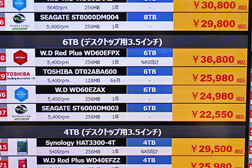 Seagate「BarraCuda」24TB HDDが60,980円で特売、全体的には上昇が目に付く