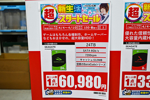 Seagate「BarraCuda」24TB HDDが60,980円で特売、HDD全体では上昇が目に付く [4月前半のHDD価格]