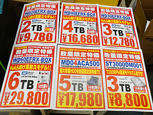 なお、東芝からは企業向けの3.5インチ新製品、Enterprise Cloudシリーズが出回り始めた。7,200rpm、128MBで、価格は5TBのMC04ACA500が税込25,704円、4TBのMC04ACA400が税込21,384円などとなっている。