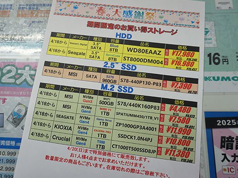 ドスパラのGOGOGWキャンペーン、Seagate 8TB HDDが16,980円、Bluetoothスピーカーが330円、あきばお~がCPUの取り扱いを開始、ジャンクコンフル秋葉原店が「中休憩」導入 ほか