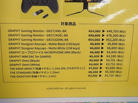 対象ショップは、TSUKUMO eX.、ツクモパソコン本店、ソフマップAKIBA パソコン・デジタル館、ヨドバシカメラ マルチメディア AKIBA、パソコンショップ アーク。