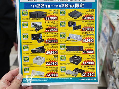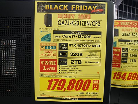 各店でブラックフライデーセール、IntelやCORSAIR製品購入者向けキャンペーン、MSI Z890搭載マザーが24,980円 ほか