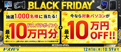抽選で1,000名に最大10万円分のドスパラポイントが当たる「BLACK FRIDAY」を実施