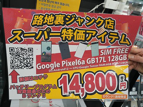 Google Pixel 6aの中古Dランク品が14,800円、バッテリープログラム対象商品