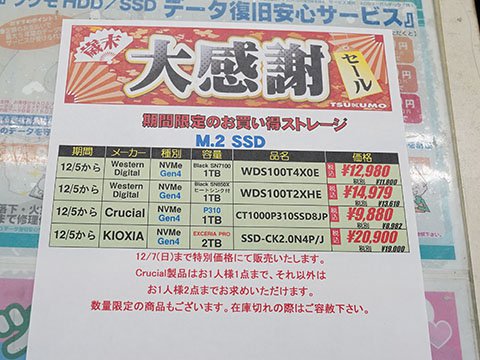 アキバお買い得価格情報(12月4日~5日調査)