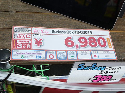 Pentium Gold 4415Y/メモリ8GBのSurface Go JTS-00014 中古品が6,980円、ACアダプタ無し