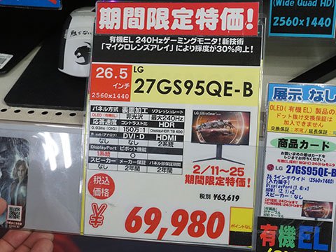 その他のお買い得情報アキバお買い得価格情報(速報版) 【 調査日:2026年2月12日 】 AKIBA PC Hotline!編集部2026年2月13日 00:20※以下における価格などは、編集部が各ショップ店頭での表示を独自調査したものです。 この価格で販売されることを保証するものではありません。 実際の販売価格は変動しますので、購入時に各ショップ店頭にてご確認ください。※特記無き価格情報は税込価格です。.家電のケンちゃん16日(月)~19日(木)は臨時休業小型の円筒ケースを無料配布中 「neGcon2SwitchPICO製作時に余ったケース」(同店)とのこと。 関連記事【2025年7月11日】“ネジコン”をNintendo Switchで使うためのUSBコンバータが登場、アケアカのリッジレーサーにも対応.テクノハウス東映サプライ品のセールを実施.PCコンフル 秋葉原4号店Core i7-1185G7搭載のThinkPad T14s Gen2 中古品が59,800円.ツクモパソコン本店/本店IICPUやメモリ、マザーボードなど5点が含まれる「お買い得セット」を13日(金)から販売 セットは計3種類、各5セット限定。 PNYとSAPPHIRE製ビデオカードのセールを実施ビデオカードの購入制限を解除 年末から上位モデルを中心に品薄が続いていたが、在庫状況が改善してきたため、購入制限を解除。 .あきばお~弐號店「マグネットキューブブロック」が1,100円、計4種類.UT-PC&Mobile 秋葉原店M1 Pro搭載のMacBook Pro 2021が125,000円など、中古品セールを実施.PCコンフル 秋葉原本店Core i5-8265U搭載のThinkPad T490s 中古品が22,800円.ソフマップAKIBA パソコン・デジタル館BenQ EX2510S-JPが24,800円、10%ポイント還元サービス付き.TSUKUMO eX.LGの31.5型4K有機ELモニター「UltraGear 32GS95UE-B」が129,980円など、期間限定セール