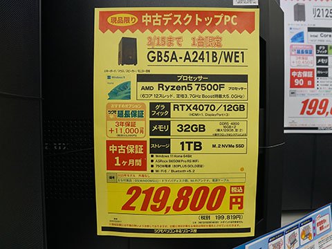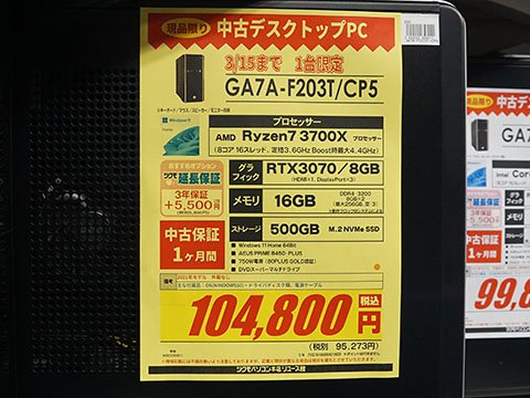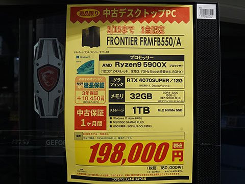 同店指定のPalit製ビデオカードを購入して、同店のCPU/ビデオカード換装サービス「マイゲーミングPCブーストパック」(料金11,000円から)を利用すると、最大11,000円引きになるキャンペーン。