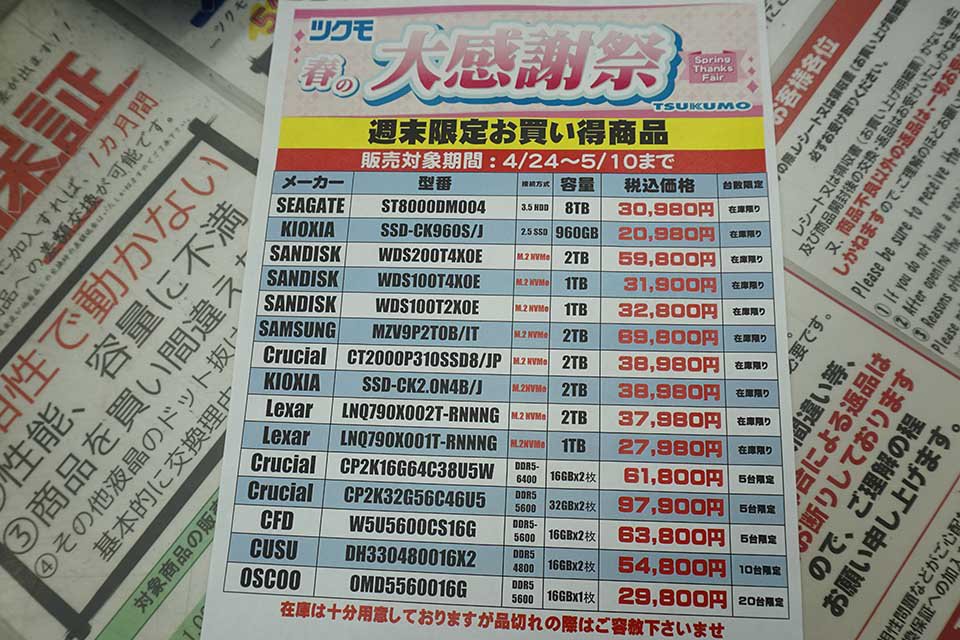 実施ショップはツクモパソコン本店、TSUKUMO eX.、ツクモLABI1なんば店、ツクモネットショップ、ソフマップAKIBA パソコン・デジタル館、ソフマップ なんば店、ビックカメラ 池袋 カメラ・パソコン館、ヨドバシカメラ マルチメディアAkiba、ヨドバシカメラ マルチメディア梅田、ドスパラ秋葉原本店、ドスパラ大阪・なんば店、パソコン工房 町田店、パソコンSHOPアーク、Joshin webショップ。