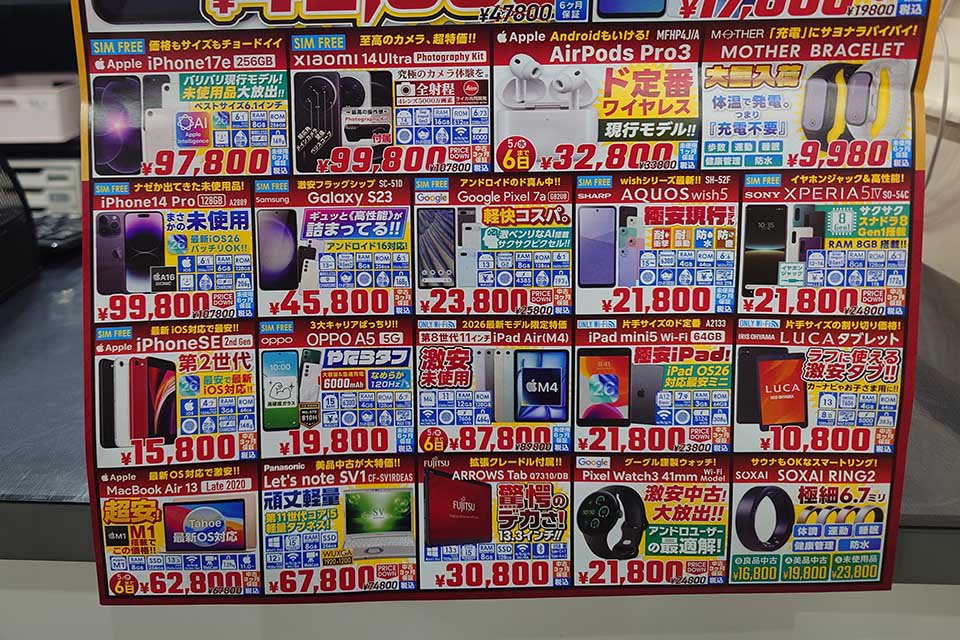 ※以下における価格などは、編集部が各ショップ店頭での表示を独自調査したものです。 この価格で販売されることを保証するものではありません。 実際の販売価格は変動しますので、購入時に各ショップ店頭にてご確認ください。※特記無き価格情報は税込価格です。