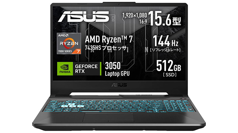 TUF Gaming A15 FA506NCRは、Ryzen 7 7435HSやGeForce RTX 3050 Laptop GPUを搭載した15.6型ゲーミングノートPC。セール価格は109,800円。