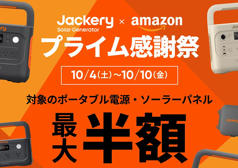 期間中、Jackeryのポータブル電源などがセール対象となっています。
