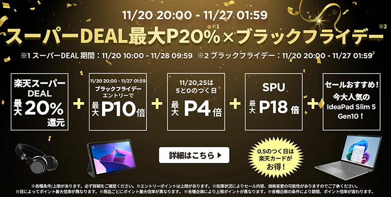 Lenovoの軽量ノートPCやゲーミングAndroidタブレットなどがお得!楽天ブラックフライデー