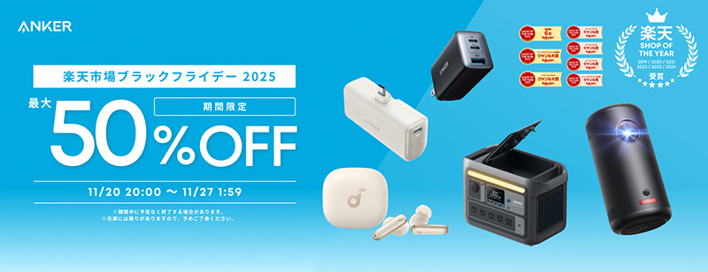 モバイルバッテリーやロボット掃除機などAnker製品が最大50%オフ!楽天ブラックフライデー