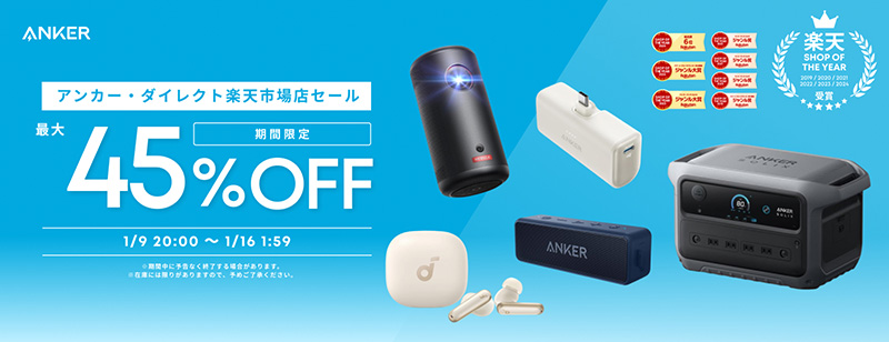 モバイルバッテリーやロボット掃除機などAnker製品が最大45%オフ!楽天お買い物マラソン
