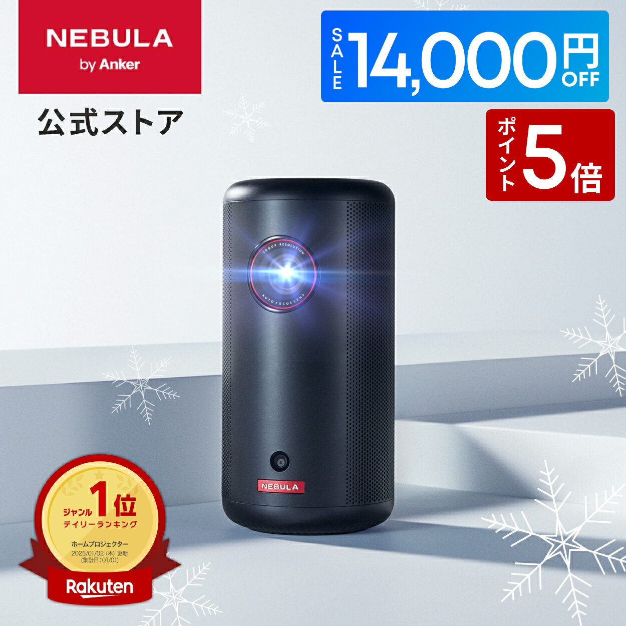 Nebula Capsule 3は、Google TV搭載モバイルプロジェクター。価格は69,990円で、14,000円オフクーポン対象。