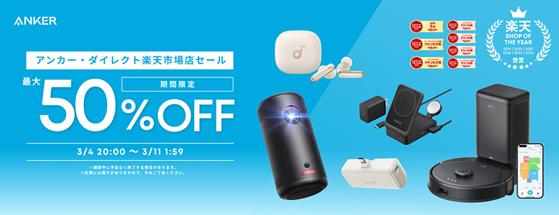モバイルバッテリーやロボット掃除機などAnker製品が最大50%オフ!楽天スーパーSALE