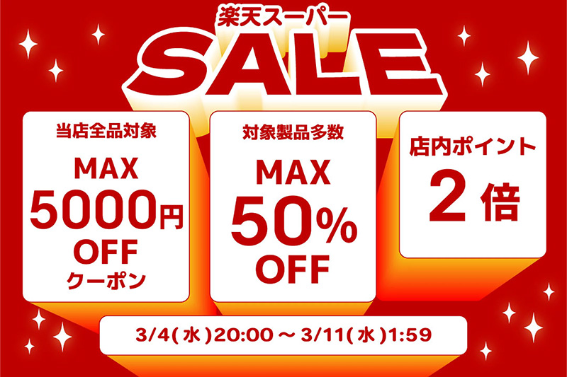 楽天市場で、11日(水)01:59までの期間限定で「楽天スーパーSALE」が開催。