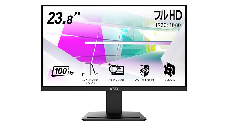 PRO MP2412は、100Hz駆動VAパネル採用の23.8インチFHDモニター。セール価格は9,600円。