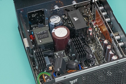 プラグインコネクタを側面に移動したことで、内部も革新的になっている。基板を新規に起こしており、電解コンデンサなど熱に弱い部品と発熱するパワートランジスタを可能な限り離したレイアウトも秀逸。しかも熱源は排気口の近くに配置しているので、排熱でコンデンサが熱を持ちにくいなど、エンジニアの細かい設計思想が見られておもしろい。