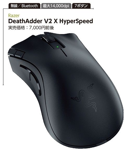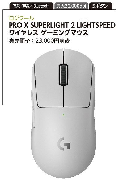 肉抜き加工なしで軽量化したゲーミングワイヤレスマウス。ポーリングレート値が最高8,000Hzと非常に高く、プレイヤーののマウス操作をより正確に入力することが可能。些細な動きも見逃さない。USB接続も可能で2mのケーブルが付属。