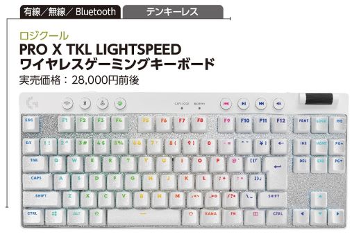 eスポーツ選手と共同開発をしゲームで勝利するために作られたハイエンドキーボード。キーキャップに耐久性に優れるPBTを採用。LIGHTSPEED技術によりワイヤレス時でも超低遅延で入力することができる。