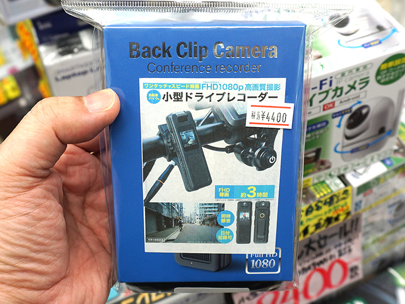 自転車などに取り付けられるコンパクトドライブレコーダー「Back Clip Camera」(JANコード 4570143104331)が、あきばお~弐號店に入荷。プラタ扱いの製品で、店頭価格は4,400円。