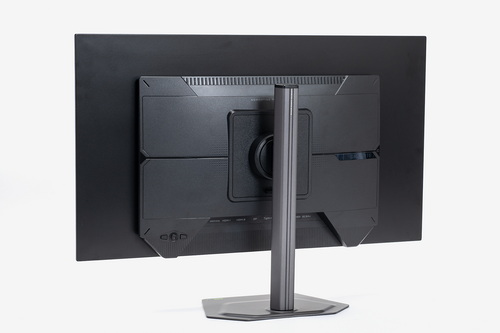 スタンドはMO27Q28G OLED Gaming Monitorと同じタイプ。高さ調整、チルト、スイベル、ピボットのすべてに対応する高機能なものだ。VESA規格もサポート。