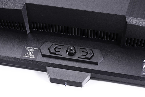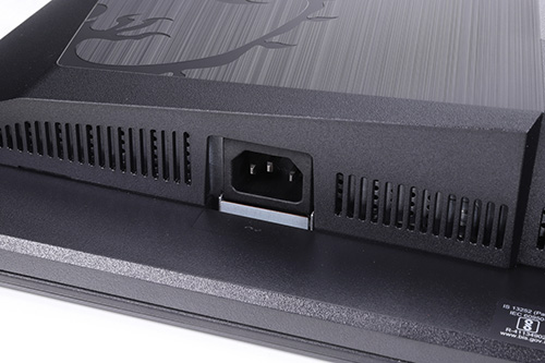 一方、モニター本体の背面中央下部には、OSD操作用のNaviキーと電源スイッチ、Gaming Intelligence起動が割り当てられたマクロキーが配置されている。