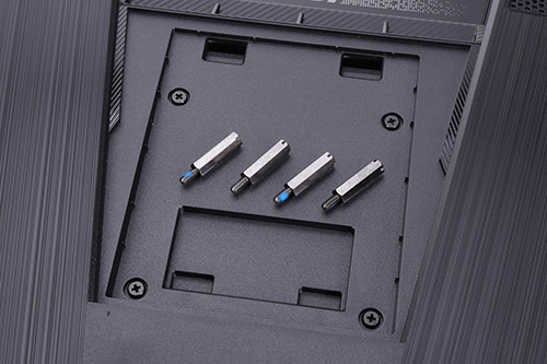 また、本体背面に同梱のスペーサーを取り付けることでVESA100に対応できるため、別売りのモニターアームを利用することが可能だ。