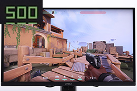 今回は、GPU負荷が低く高いフレームレートを出しやすいVALORANTを使い、240Hz駆動時と500Hz駆動時で違いが感じられるのか試してみたのだが、視線を大きく動かしたときの表示に関してはやはり500Hzの方が滑らかに感じられた。