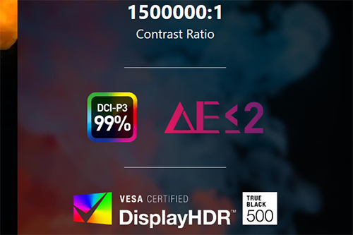 このように優れた表示速度を実現しながら、DCI-P3カバー率99%に達する広い色域とΔE≦2の色精度、DisplayHDR True Black 500認証を取得した抜群のコントラスト比を兼ね備えており、映像を表示する性能に関してはまさに最上級の実力を有していると言える。